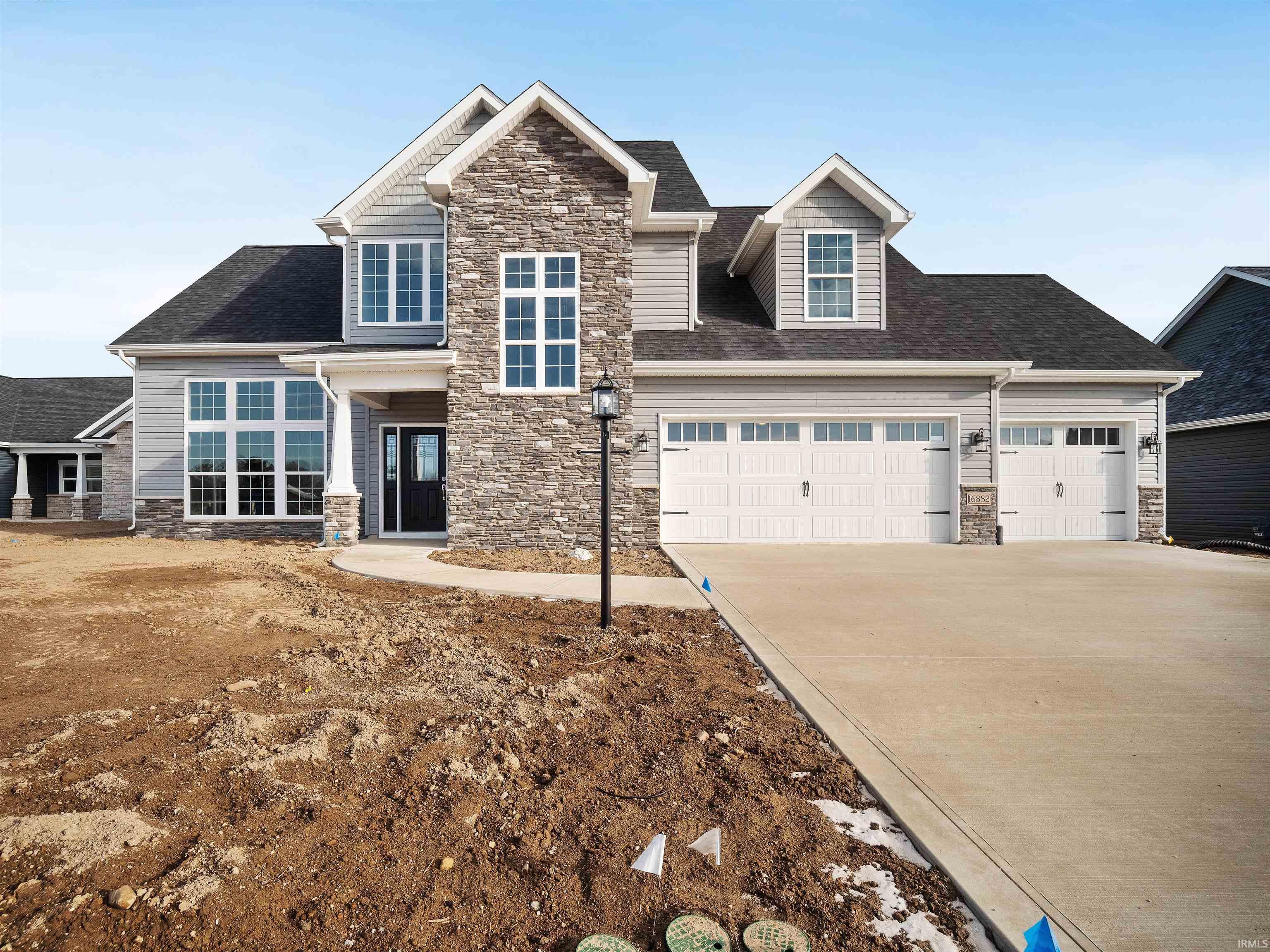 This KEYSTONE III Kiracofe home is complete and ready to show! Located in one of Huntertown's newest subdivisions, Rolling Oaks, this open concept two story on a slab has a spacious floor plan and high end amenities throughout. This four bedrooms, 2.5 bath features a bonus loft space, a large eat-in kitchen with quartz countertops, a primary bedroom on the main floor, screened-in patio, 12' high great room ceilings and a pond view! This home also includes irrigation in the front yard, a dedicated gas line for your outdoor grill, loads of storage and all kitchen appliances including the refrigerator. Don't miss a chance to get in on the ground floor of this new construction home. Rolling Oaks is conveniently located near I69, shopping, dining, Parkview North and Dupont Hospital.