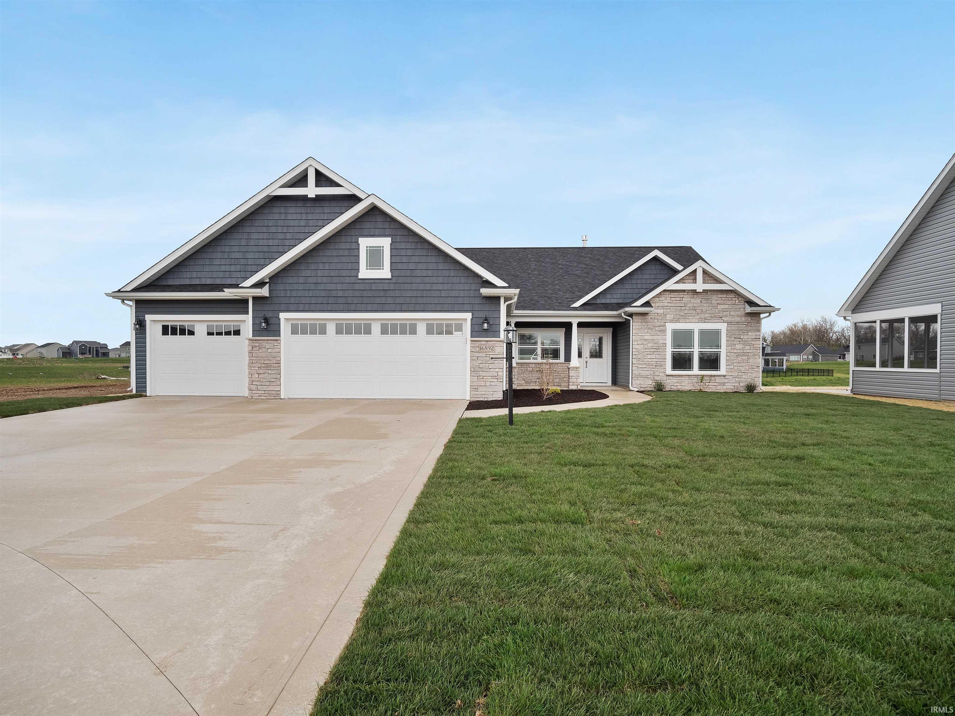 OPEN EVERY SUNDAY AND BY APPOINTMENT Don't miss a chance to see a new Kiracofe custom ranch that is finished and ready to show! This split level 3 bedroom, 2.5 bath ranch features high ceilings, a spacious kitchen with quartz in the kitchen, and an expansive covered patio with stunning views of two ponds. This home also includes many upgrades such as irrigation in front yard, a dedicated gas line for your outside grill and all kitchen appliances - including refrigerator. Located in one of Huntertown's newest subdivisions, Rolling Oaks, this is a must see home close to I69, shopping, dining, Parkview North and Dupont Hospital.