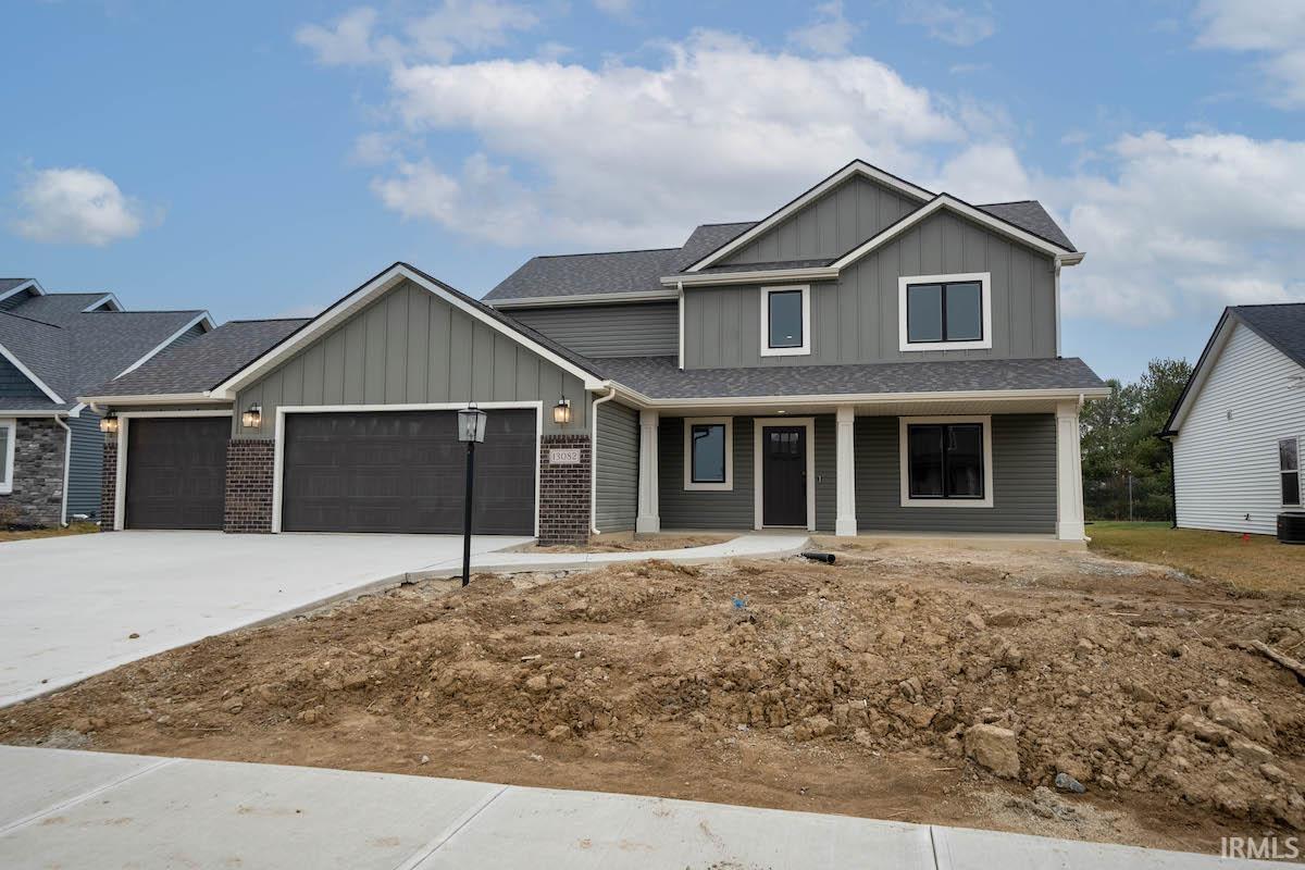 Hard to find four bedroom 2 story home in Southwest Allen county schools! This home is for you to make memories. This plan has a spacious main level with a den just off the kitchen. The kitchen has custom stained cabinetry with quartz tops and an island, stainless steel gas range, microwave & dishwasher. The great room has a corner gas fireplace. The second level offers four spacious bedrooms. The owner's suite is spacious and has bathroom complete with linen closet, 5' wide vanity and a large shower.