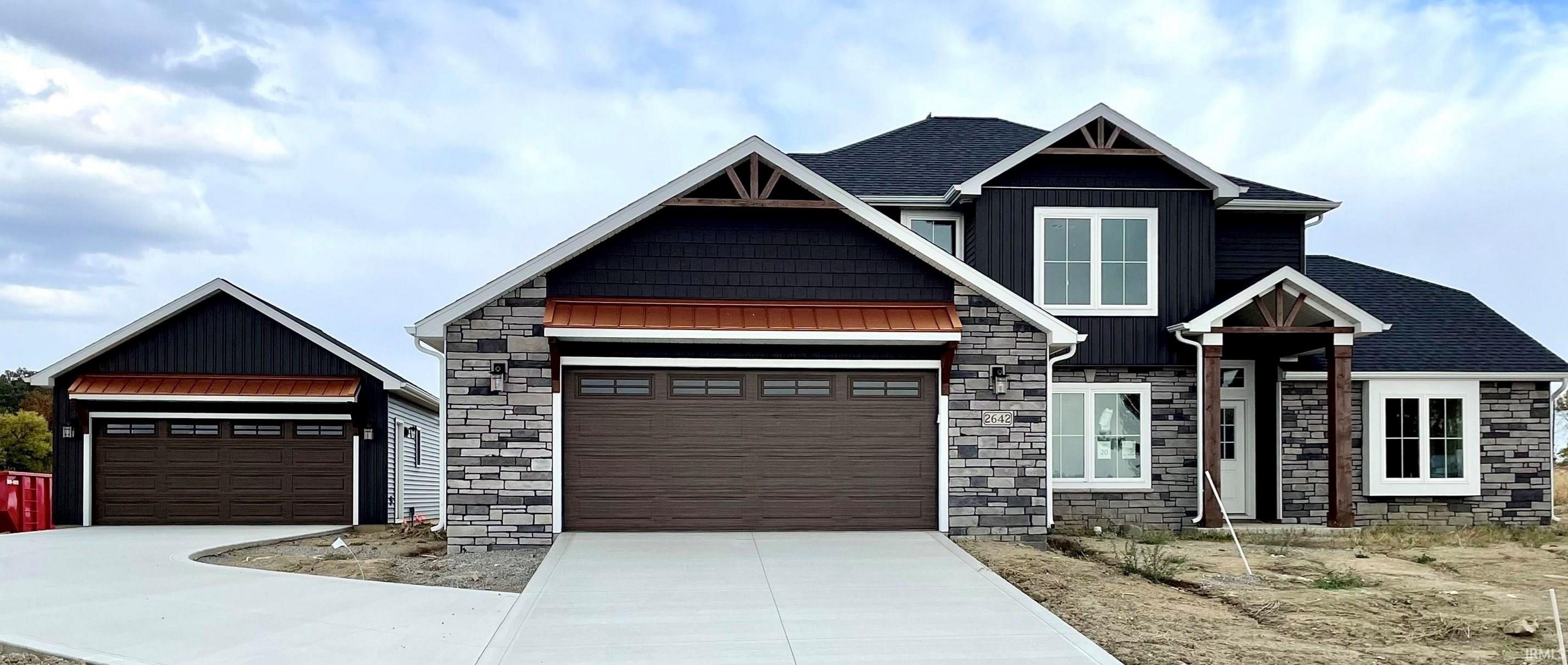 NEW Capri Model home by Fall Creek Homes is NOW available with OUTBUILDING!! This Master on Main floor plan is the perfect family home, located in our brand new Quinlado subdivision off of secluded Yellow River Rd, in NWAC (Carroll) school district. Offering 4 beds, 2.5 bath, 2206 total living sq ft and 2 car attached garage with 5’ extension PLUS 2 car/480 sq ft detached garage on nearly half an acre lot! Enjoy the special features of the Capri plan including den flex space, vaulted ceilings, large freestanding island, open floor plan, Master Suite on main, freestanding tub, double vanity, walk-in closet and cozy gas fireplace. Unique upgrades for this home include premium exterior siding and stone, wood grain garage doors with windows, copper metal eyebrow roof, custom wood cabinetry, quartz kitchen countertops, kitchen backsplash, stone fireplace surround, LVP flooring through great room/kitchen/dining, premium lighting, Delta faucets throughout, ceramic tile shower, and custom trim accent wall in den. Brand new gas range, dishwasher, microwave with trim kit, range hood, custom glass Master shower door, and $8,500 landscaping/yard allowance included with home! Enjoy the assurance that new construction brings with an included 10 year RWC warranty and 1 year Builder and Concrete warranty provided by Fall Creek Homes. Schedule your tour today!!
