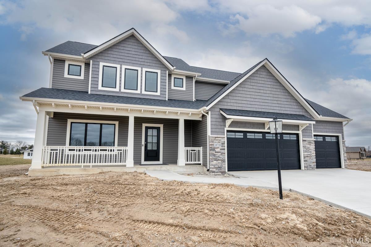 This home is Northwest Allen County schools has everything! The exterior of this 2-story home is full of character and special details and even has a large covered porch. The welcoming entry leads to a den with barn doors. Custom cabinetry lines three walls of this large kitchen and is accented with a tile backsplash and quartz countertops. The kitchen island has a breakfast bar. The nook has an 8'x8' sliding door to the 16' deep covered rear veranda. The great room offers a vented corner fireplace and large windows with transoms for natural light. The 10' ceiling in the great room is an added bonus. The second level is a spacious design with four bedrooms. The master suite offers a tray ceiling and luxurious bathroom with a double sink vanity and porcelain tile shower. Three additional bedrooms offer plenty of space for the family or for guests. The full basement is plumbed for a future full bathroom and a future wet bar. The basement is also drywalled. Don't miss out on this amazing home in Greyson Heights.