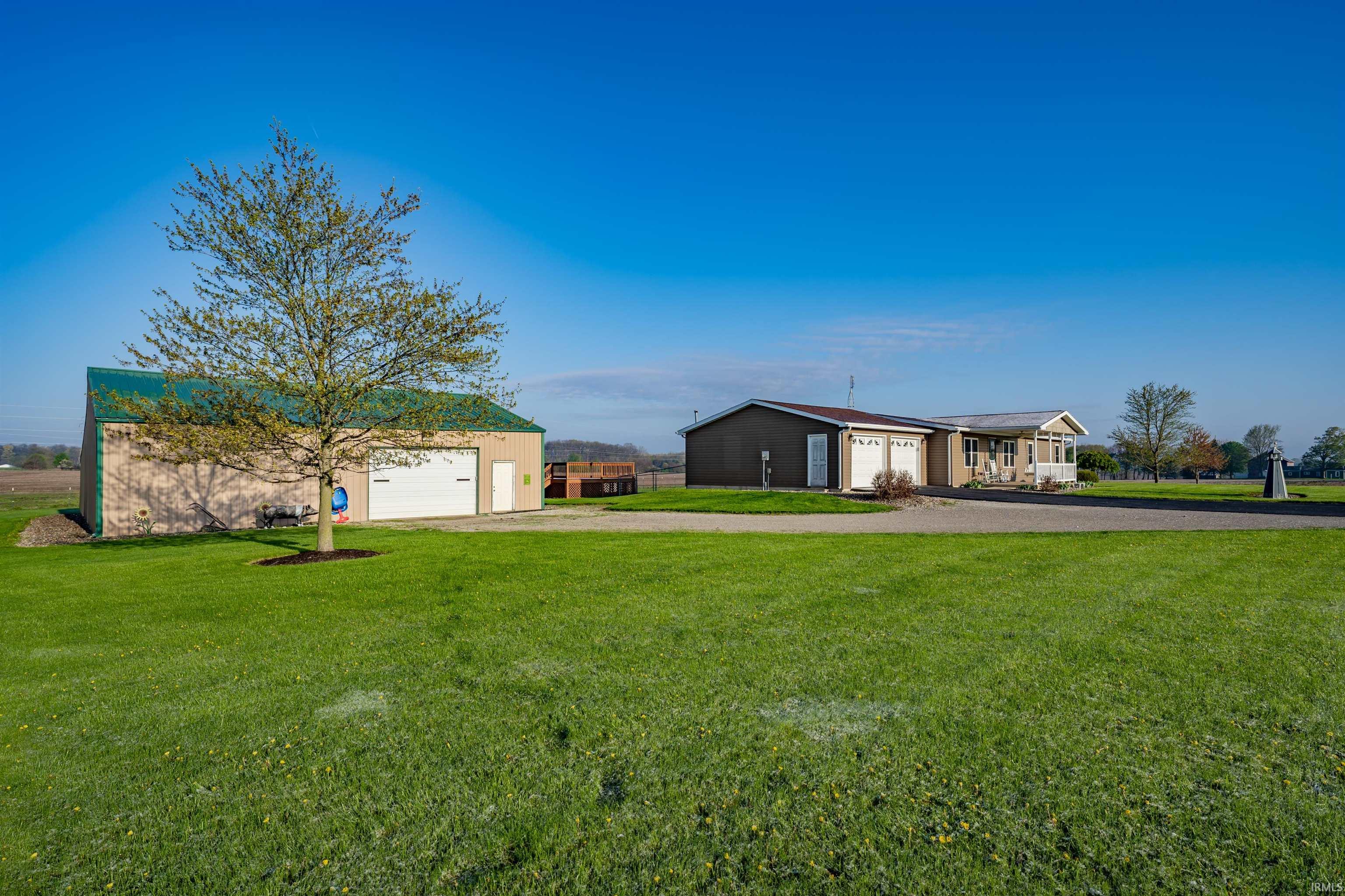 **24 hour first right contingency offer accepted** Take me home country roads! Looking for your very own peaceful retreat with a large barn/out building with concrete floor plus 2 gorgeous acres? Look no further! Located only 7 minutes south of downtown Columbia City not far from IN-9, this 5 bedroom, 2 full bath features stunning nature views all around in quiet area that allows you to bask in peace & quiet. Paved drive leads to attached 2 car garage with gravel offshoot linking big detached garage/barn which makes for an excellent workshop or storage for big equipment. Attractive exterior is neat & tidy with white trim that pops & detailed rock beds with select landscaping. Inviting front porch is ideal for relaxing in the shade & enjoying the beautiful & serene setting. Inside the front door you’ll find a bright & welcoming atmosphere complemented by wood flooring & a soft neutral color palette—the perfect backdrop to your own personal style! Cozy formal front living room gets tons of natural light & links to kitchen/dining. Efficient galley style kitchen has everything you need with abundant cabinetry & wrap-around counter separating kitchen from dining zone. Wonderful spacious family room off kitchen has picture windows filled with the great outdoors, which means you can watch the seasons change all year round! Five comfortably sized bedrooms, all carpeted with ample storage throughout. Can easily convert an unneeded bedroom into a home office, den, or flex space. One bath has tub/shower combo & the other has a walk-in shower; sizable laundry with build-ins & pantry also off kitchen. Oversized out building is very sturdy & made of metal with matching metal roof, would make a fantastic place to tinker with vehicles, wood work, or use as desired. Back yard is more than generous with lots of grass & plenty of room for outdoor fun & activities. Above ground pool has wood platform for easy access as well as small free standing shed for all your tools & toys. Of course one of the main attractions here is going to be the sweeping nature & countryside views from every direction—wide open space where you can revel in the fresh air & privacy afforded by the surrounding fields. Short drive to CC & US-30 for your shopping, dining & grocery needs with both Warsaw & Fort Wayne about a half an hour away for additional options. Are you ready to start making memories here & have your best summer yet? Secure this amazing gem today!
