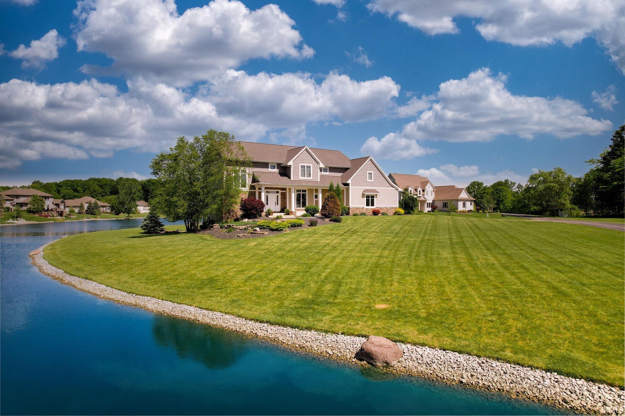 Welcome to this exceptional home situated on a sprawling 1.8 acre lot overlooking a picturesque community pond with beach access. Constructed by renowned Slattery Builders in 2010. This residence offers unparalleled quality and attention to detail. Spanning approximately 5,000+/- sq. ft. this spacious home provides ample room for both relaxation and entertainment. One of the highlights of this home is the impressive double sided stone fireplace, which serves as a captivating centerpiece between the kitchen/hearth room and the great room, creating a warm and inviting atmosphere. The kitchen’s custom cabinetry, quartz countertops and attention to detail elevate the home’s aesthetic appeal. The home features a breakfast nook and a separate dining room, providing options for both casual and formal dining experiences. With 5 bedrooms and 4-1/2 baths, this home accommodates both family and guests with ease. The master suite boasts a walk-in tile shower, exuding luxury and providing a tranquil retreat. The main floor office offers a private workspace, while the walk-in pantry, mudroom, and ample storage throughout the home ensure organization and functionality. Indulge in breathtaking water views from various vantage points, including the screened in porch, where you can relax and enjoy the surroundings in comfort. The finished basement adds another dimension to this remarkable property, offering a 5th bedroom, a full bath, and additional storage space along with a small refreshment area. The 3 car garage features a convenient 4th utility bay, ensuring plenty of space for vehicles and storage. Located in the desirable Woodlands addition and within the Northern Wells school district, this home is situated in a highly sought-after area known for its community ambiance and quality education. Don’t miss the opportunity to make this extraordinary property your own. Experience the ultimate in luxury living combined with stunning water views and a spacious layout. Schedule a showing today and discover the endless possibilities this home has to offer.