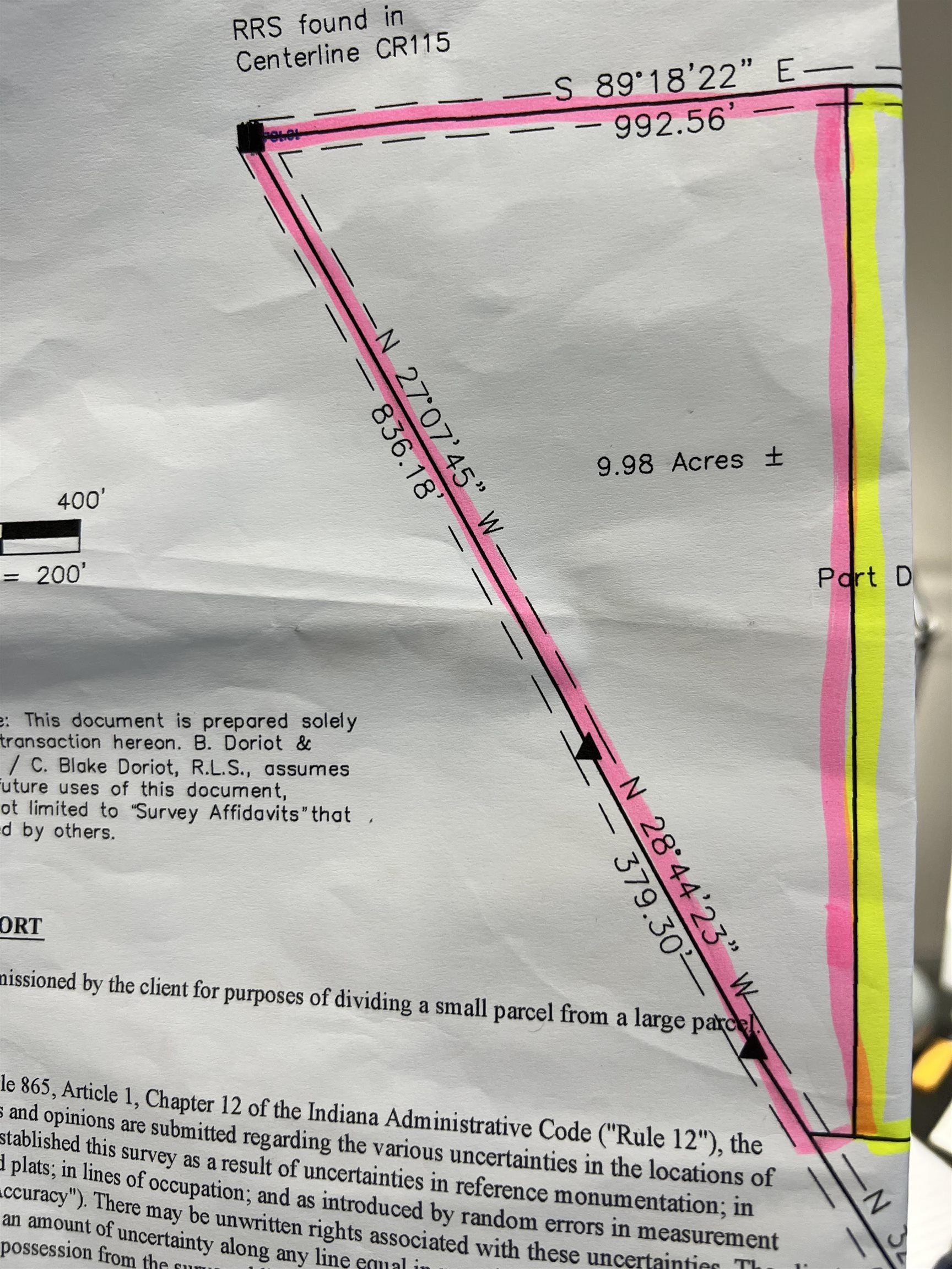 9.98 Acres of land. Survey is in process! Official acres could be plus or minus per finished survey. New legal description in process.