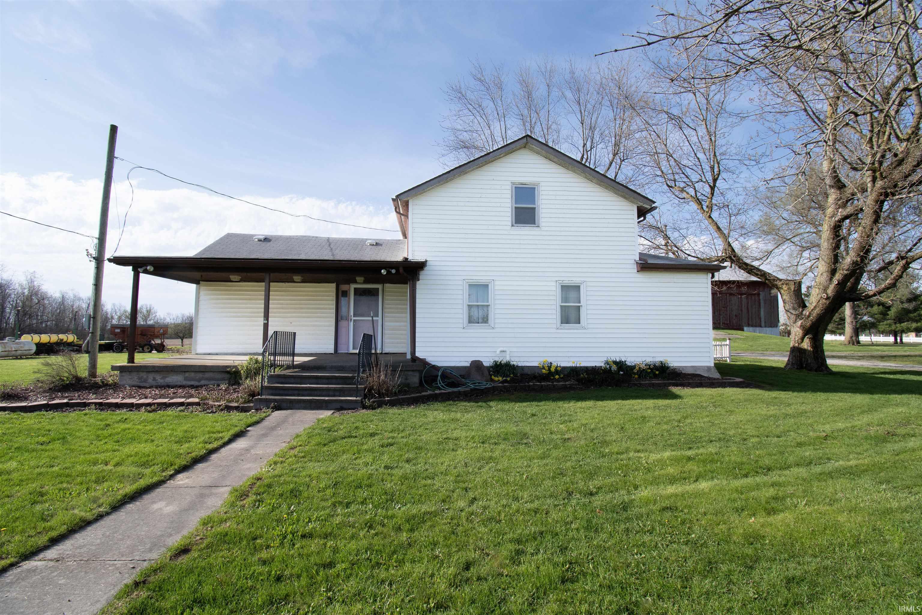 Country living at its best in quaint Spencerville Indiana, uniquely situated 20 minutes to Auburn or Fort Wayne. Featuring a well-maintained farmhouse with 4 large bedrooms and 2.5 baths. This home boasts ample storage as in closet space in the bedrooms, kitchen cabinets and pantry, and oversized laundry room. Custom laundry shoot from the upstairs to a downstairs bathroom. This home includes an extra living space or rec room, enclosed back porch, and covered front porch. Very large eat in kitchen with custom cabinetry. Classic bank barn features floorboards from an earlier remodel of the Historic Spencerville Covered Bridge. Lower-part of the barn is set up with stalls for livestock. Pole building has several portioned off areas, once housing a custom cabinet shop. This building has a separate electric meter, furnace, water line, and water tank.