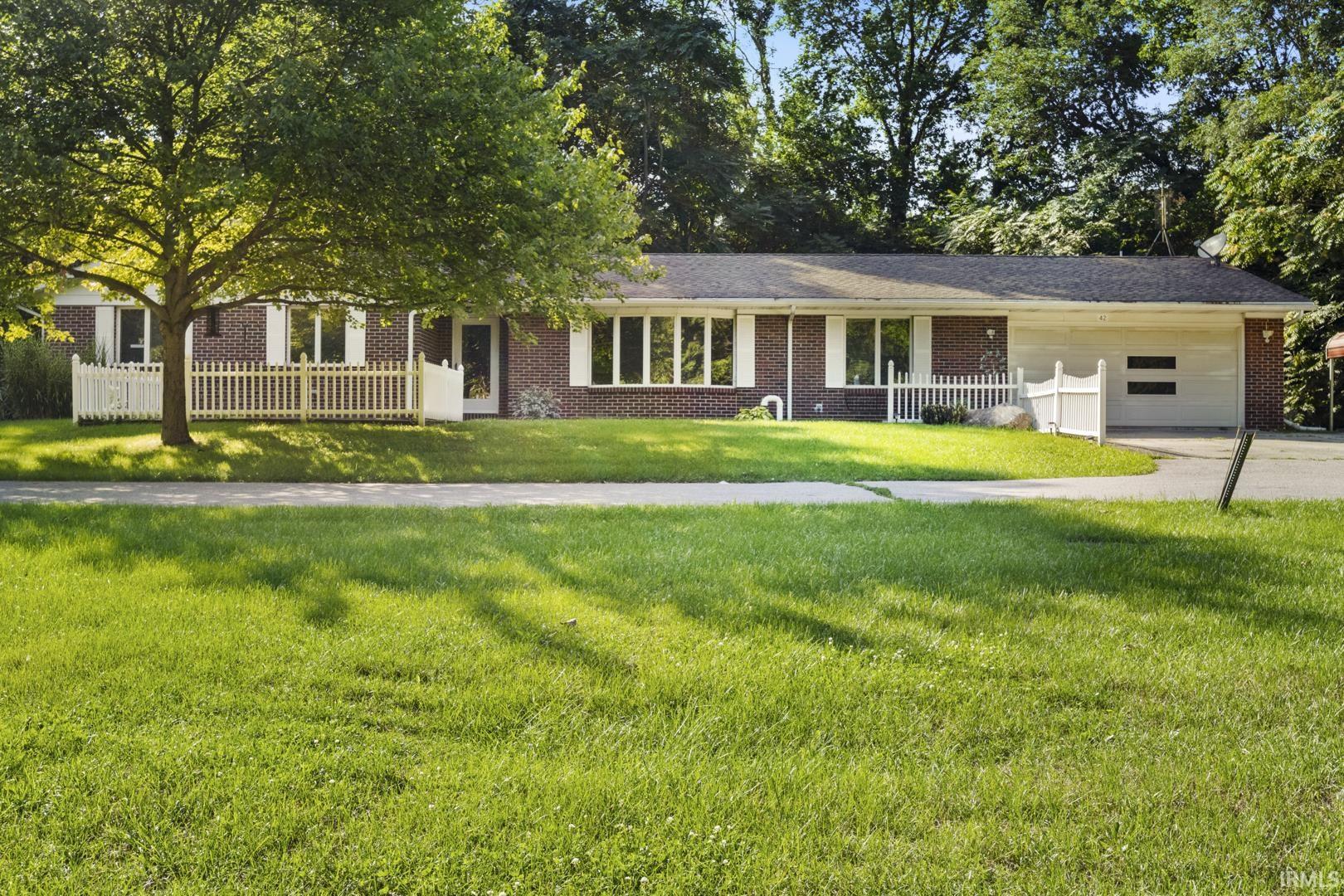 Escape to to your own riverside retreat that sits HIGH (not in Flood Plain) by the Tippecanoe River. This cozy 3-bedroom, 2-bathroom brick ranch home boasts a recently remodeled bathroom, a family room with a charming masonry fireplace, and a kitchen featuring two spacious pantries and brand-new flooring throughout. Enjoy the tranquility of over 300 ft of waterfront along the river, where you can watch the water flow by, try your hand at fishing, or unwind. The property includes a large heated 2-car garage that is heated by a new gas wall heater and there is a detached carport. a fenced-in yard with a dog run, and 2 patios one with river view!.