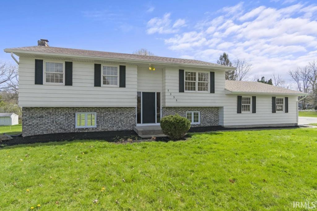 Split-level home on over a half-acre corner lot. Home features fresh paint, new flooring, new lighting, new bathroom vanities with ceramic flooring and a reconfigured kitchen with island. Home features open concept living room with 2 bedrooms, 2 full bathrooms upstairs. Downstairs features 1 bedroom, living room along with an oversized room with fireplace, closet that can be closed off to make a 4th bedroom or master suite. Home is located in the Liberty Hills Subdivision. Close to grocery store, restaurants, I-69.