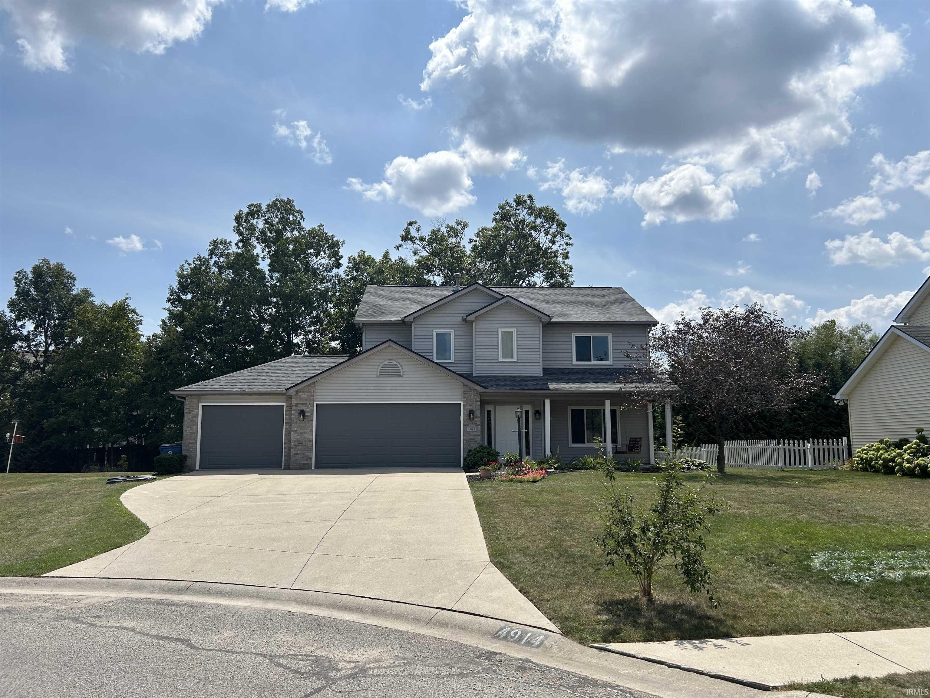 Check out this extremely well maintained 4 bed 2 1/2 bath 2-story home located in The Oaks! NWA County Schools. Featuring a 3-car garage w/ stairs/ storage, peaceful cul-de-sac Lot w/ mature trees and extensive landscaping, covered porch w/ swing, open hard scape in back and more yard than you think! BRAND NEW: Garage Doors w/ 3-year warranty AND Central A/C and Furnace w/ warranties. NEW Windows in 2023 w/ Lifetime Transferrable Warranty. NEW Roof in 2022 w/ warranty and NEW Water Heater. Beautiful open eat-in kitchen w/ breakfast bar, lots of natural light, counter and cabinet space. All appliances stay including with washer and dryer. Gas Range, Dishwasher and Microwave BRAND NEW and Refrigerator- 2023. Main Level: Beautiful foyer entry into living room w/ gas fireplace, Hardwood Floors, flex space, storage, UPDATED half bath, eat-in kitchen and separate large laundry with shelving. Upper Level: Huge primary bedroom with walk-in closet, extra closet, full bath w/ double vanity sinks and vinyl plank flooring. 3 more bedrooms, one with a walk-in closet and cute desk nook window space and UPDATED full bath. Great opportunity, great location, close to schools, Parkview and Dupont Hospitals, I69/469, new local shopping (ALDI'S), restaurants, Etc. All that is missing is YOU!