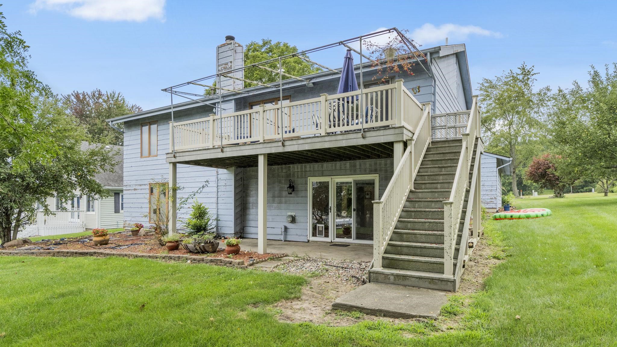 North Snow Bay, Snow Lake. This ranch over full basement is a waterfront opportunity for affordable lake living. Living and dining and bedrooms have a view of the water. Kitchen has real wood cabinetry, pantry and breakfast nook, and a full size formal dining is adjacent. Morning sun while making coffee is a plus! There are three bedrooms and two bathrooms on the main floor, along with a spacious water-facing living room. The lower level has a large family room, a tv nook, another large bedroom and a bonus room for workout or storage. There is a wide deck on the waterfront side as well as a concrete patio at ground level. Al;most 50' of frontage on the bay.