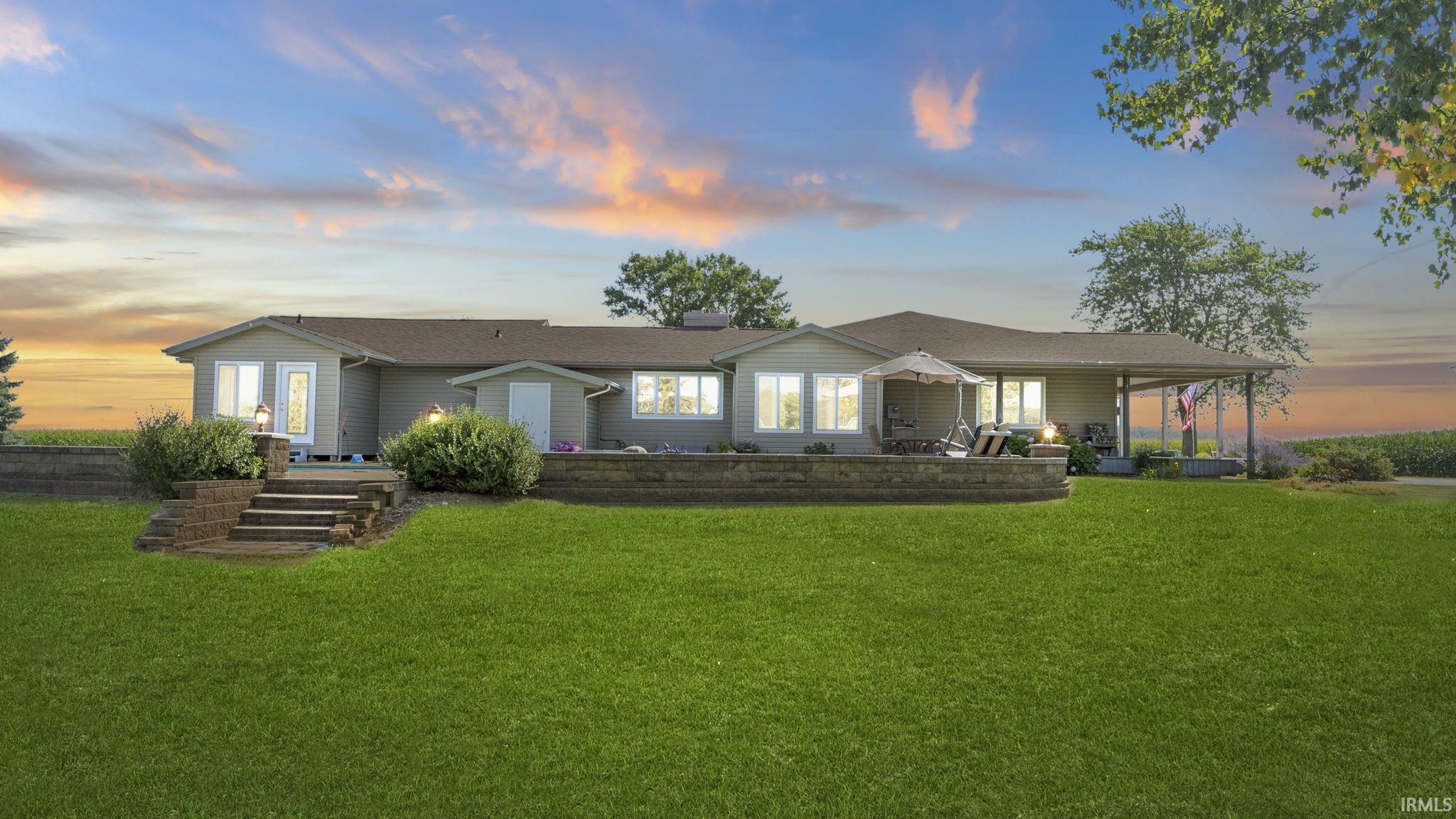 Discover this wonderful 3-bedroom, 2.5-bath ranch home nestled on 2.5 acres of serene countryside just north of Norwell schools. This property boasts lots of updates throughout the home, a refreshing inground salt-water pool, a spacious pole barn, and a charming chicken coop. As you step inside, a generous living room with a cozy vented gas log fireplace and soaring beamed cathedral ceiling welcomes you. The home’s open, circular floor plan leads to a delightful three-season room off of the pool and a beautifully updated kitchen featuring a large island, pull-out shelves, granite countertops, and plenty of storage. Entertain with ease in the adjacent dining area, complete with a striking brick wall & a wood-burning fireplace. The primary suite offers a private bath and access to a partially completed three-season room, that will be perfect for relaxing after a swim in the pool. The recently updated family bath is shared by the other two bedrooms. A large laundry/mud room with a convenient half bath provides great extra storage. This home includes all appliances and boasts many updates: a new tear-off roof in 2023 with a transferable warranty, updated windows, a whole-house generator installed in 2022, a kitchen remodel in 2008, geothermal system in 2022, and a new sump pump in 2024. A huge, attached garage with a workshop area provides ample space for projects and storage. The backyard is your private oasis with a paver patio surrounding the salt-water pool, flanked by fruit trees. The pole barn is equipped with 200-amp service and features two 12’ overhead doors. And don’t forget the cute chicken coop! The sellers welcome inspections but are selling the home as-is. This property showcases true pride of ownership. Don’t miss out on this unique opportunity to make this beautiful ranch home yours!