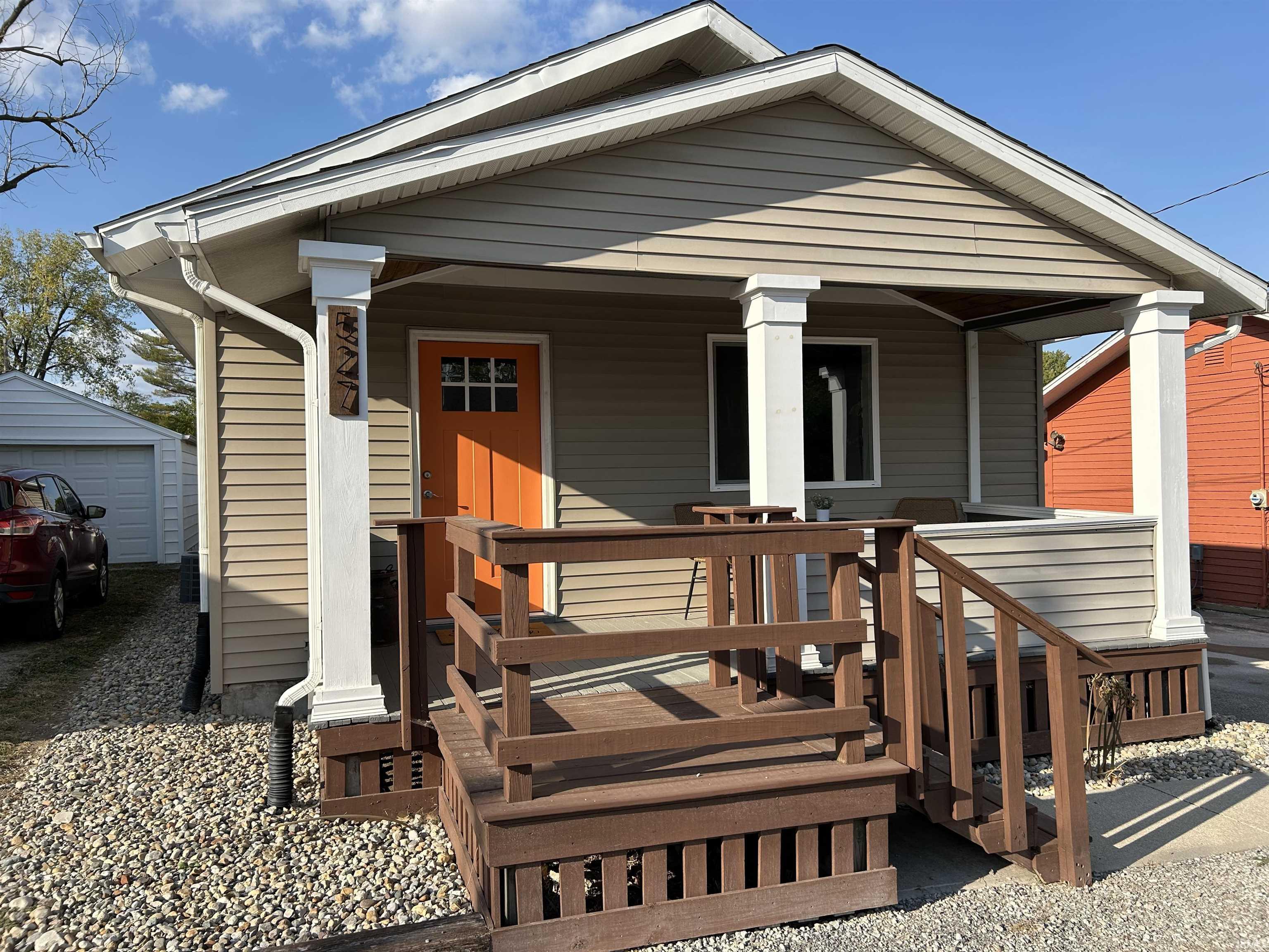 Move-in-ready! Stunning 2 bed 2 Full Bath Bungalow w/ 9 ft ceilings! Relax on your beautifully updated front porch w/ ceiling fan. Fresh gravel in front for extra parking and a 1 car detached garage. Huge back yard with New Wood Privacy Fence, firepit and 12x10 deck. All NEW interior and exterior doors. BRAND NEW: Roof, Central A/C, Vinyl Plank Flooring, Carpet, De-Humidifier, Sump pump/ perimeter drain and lighting. Updated kitchen w/ new cabinets, butcher block counter-tops, NEW stainless-steel Refrigerator, Dishwasher, Disposal, Microwave and Gas Range/Oven. Primary Bedroom features its own updated full bathroom. Large 2nd bedroom, Updated Full Bath w/ laundry shut and Updated Laundry Rm in hallway w/ new cabinets and washer/dryer that stay. Great layout and location! Close to downtown, shopping, entertainment, Turnstone and schools. All that is missing is YOU! Owner is listing agent.