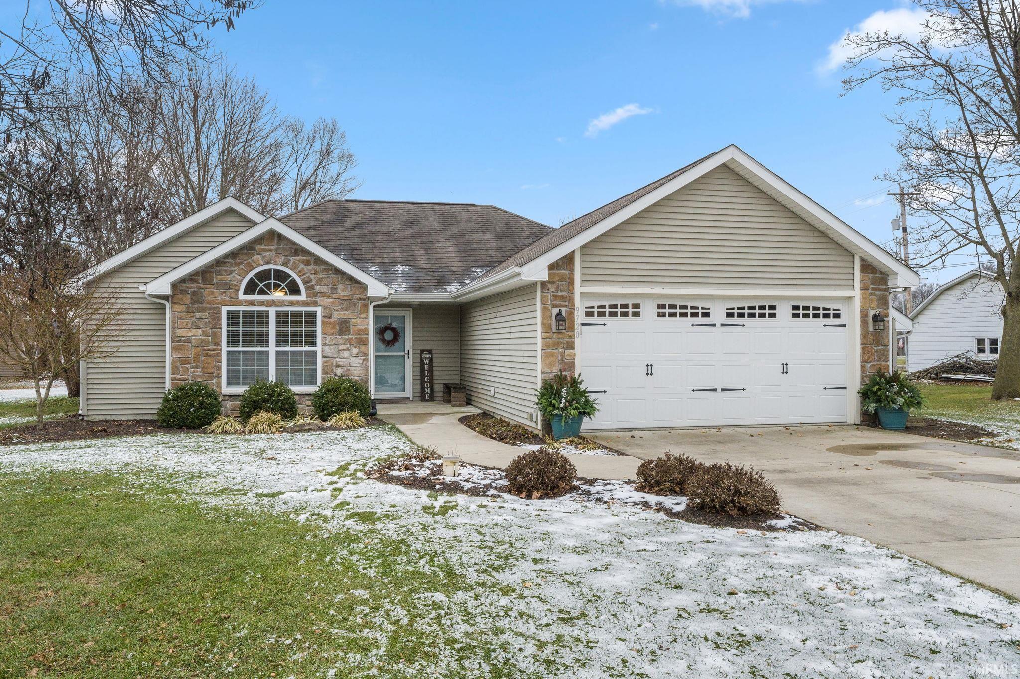 *First Right Contingency & Still Allowing Showings* Welcome Home to Your Perfect Ranch in Leo Schools! Nestled on spacious lot with no HOA, this gem offers the perfect blend of town convenience and country charm. Move-in-ready home boasts 3 bedrooms and 2 full baths, meticulously maintained by the original owner. Step inside to discover a cozy gas fireplace that anchors the spacious living room. The updated kitchen is a dream for entertaining! With modern finishes, ample counter space, and a seamless flow to the dining and living areas, it’s the perfect spot to host gatherings or enjoy a cozy family meal. Outdoor living is a breeze with a 12x12 covered porch, an additional covered concrete pad perfect for grilling, and incredible landscaping that enhances the home’s curb appeal. The spacious yard offers plenty of room for relaxation, play, or entertaining. Enjoy peace of mind with quality features like Anderson windows, a High-Efficiency Furnace, and a Carriage Style Garage Door. The attached 2-car garage ensures plenty of storage for vehicles or hobbies. This home offers the best of both worlds: a serene countryside feel while being just minutes from town amenities. Don’t miss your chance to make this house your home!