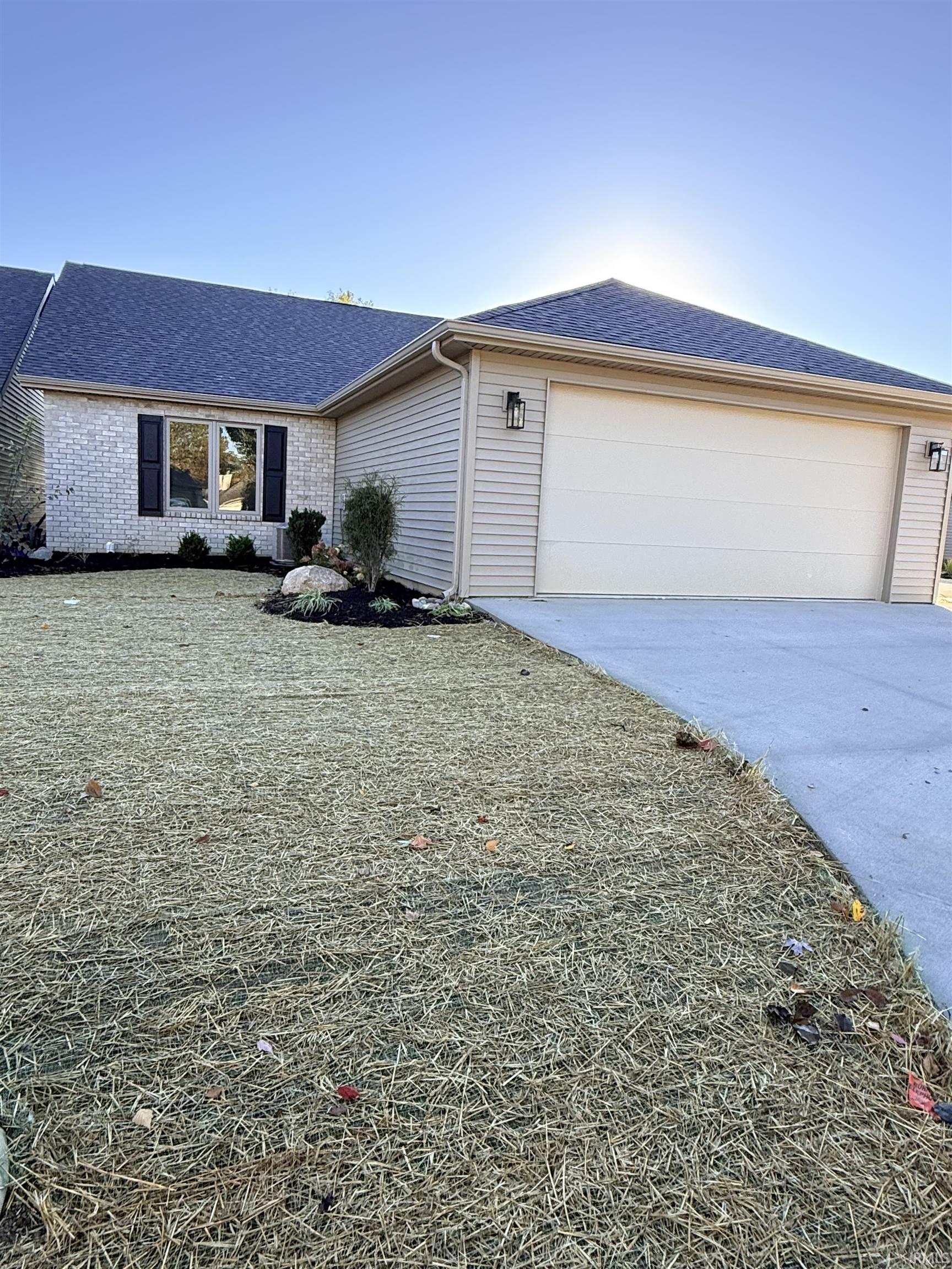 This stunning villa combines modern design with maintenance-free living. Step inside to find timeless flooring, 4” baseboards, and a cozy gas log fireplace. Energy-efficient windows and insulation will help keep your utility bills low for years to come. The kitchen shines with soft-close cabinets, beautiful light fixtures, and neutral paint tones throughout — ready for your personal touch. Both bedrooms and bathrooms are conveniently located on the main floor, while the upstairs loft offers endless possibilities: media room, game room, guest space, or even a spot for the kids, grandkids, dogs, collections. Quarterly HOA dues cover it all — even the brand-new high-end siding, yard care, landscaping, mulch, snow removal, water, sewer, and trash pickup — so you can enjoy true peace of mind. All of this is tucked in a convenient location close to 469, shopping, dining, and the quiet countryside. Lock box is on front door around to the right. Seller financing available 7% interest with a 5 year balloon.