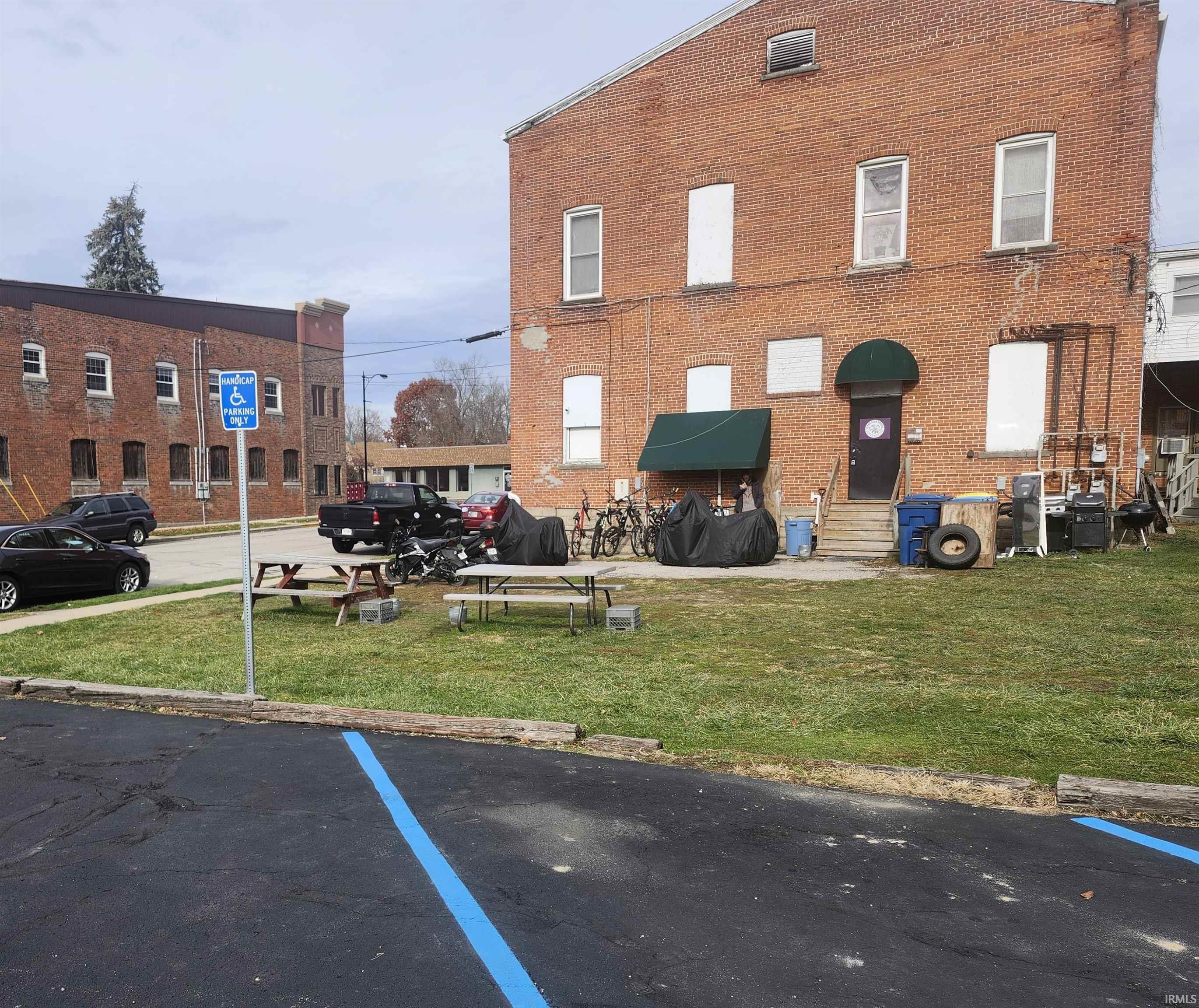 Adjoins a public parking lot. Downtown commercial zoning allows for several permitted uses. Is also in the historic district.